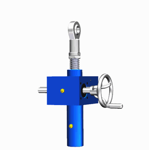 丝杠上下移动,由于内部有蜗轮蜗杆,丝杠的减速作用,达到放大推力的作用。