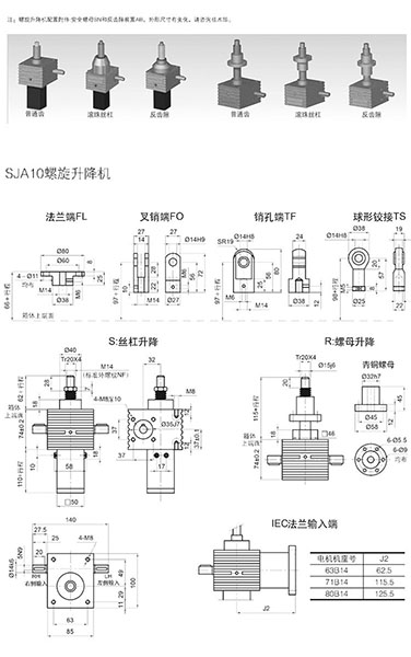 蜗轮丝杆升降机SJA蜗轮丝杆升降机结构图,SJA 蜗轮丝杆升降机主要由蜗轮、蜗杆、箱体、轴承、丝杠等零部件组成,方形凹槽壳体,方形尾罩,输入形式多样,丝杆有多种运动形式和头部型式